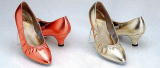 シューズは? 最初は、普通の靴でも大丈夫ですが、ダンスシューズを一足用意されると、軽くて、滑らないので踊りやすいです。 ダンスシューズは、革製や布製など、色やデザインもいろいろあるので、ダンス・ショップで履きやすいものをえらぶのがよいでしょう。 Sabu&Jun's 楽しい社交ダンスにも、いろいろカタログがありますので、お取り寄せすることもできます。 |